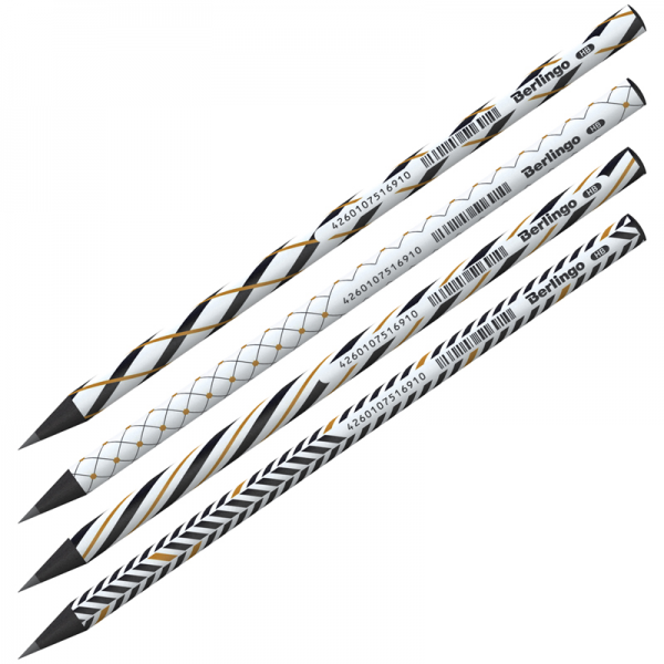 Czarno-biały ołówek wykonany z czarnego drewna. Różne kolorowe wzory. Wykonany z bardzo wytrzymałego materiału. Grafit klejony, nie pęka przy upadku. Bezpieczny dla dzieci, w przypadku usterki, nie pozostawia małych i ostrych fragmentów. Nadaje się do rysowania i pisania. Średnica grafitu 2,2 mm, twardość HB, okrągły kształt, kod kreskowy na obudowie.