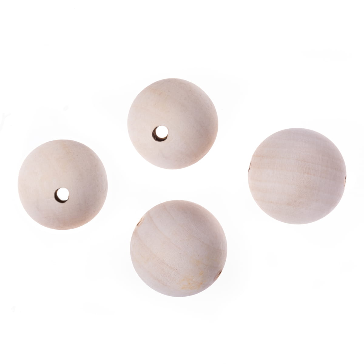 Koraliki z drewna w kształcie kulek o dużej średnicy 4 cm. W naturalnej postaci wpiszą się świetnie w obowiązujące eko trendy. Mogą też być zdobione popularnymi technikami (decoupage, malowanie, złocenia, oklejanie).