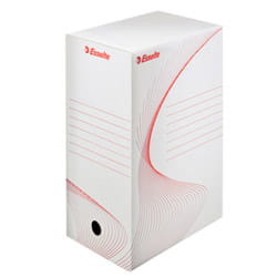 Wykonany z twardej tektury falistej. Do długotrwałego przechowywania dokumentów wypiętych z segregatora. Możliwość ustawienia poziomo lub pionowo. Otwór na palec ułatwiający zdejmowanie z półki. W kolorze białym. Dostarczane w stanie rozłożonym.