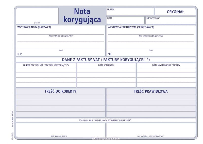 Gm 306s Nota korygująca