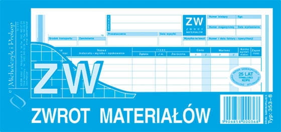 MiP ZW Zwrot materiałów jednopozycyjne 1/3 A4