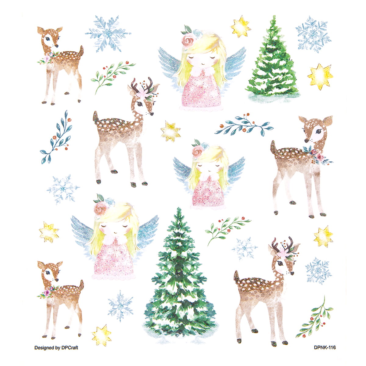 Naklejki z brokatem sarenki i aniołki 27szt. DPNK-116