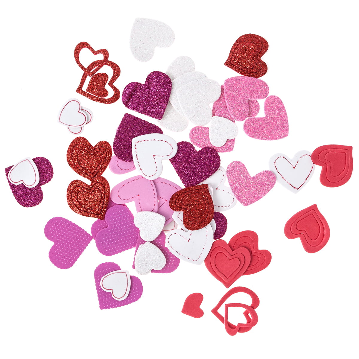 Naklejki z pianki serca z brokatem 50szt. KSPI-069