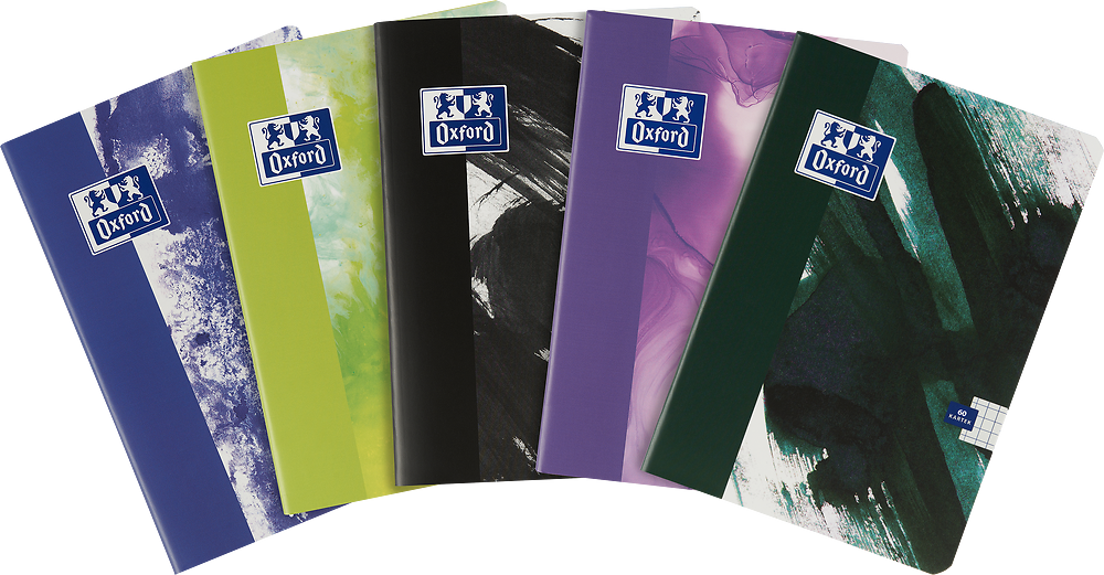 Kolekcja Oxford Paint została zaprojektowana z myślą o malarstwie różnymi technikami. Na każdej okładce widoczny jest inny kolor, który sprawia wrażenie jakby został naniesiony pędzlem lub rozmyty w wodzie. Kolekcja dedykowana jest uczniom starszych klas, szczególnie pasjonatom rysunku i malarstwa. Matowe wykończenie okładek nadaje wyjątkowej elegancji. Wysoka jakość Oxford zapewnia zeszytom wytrzymałość, dzięku czemu będą towarzyszyły uczniom przez cały rok szkolny.
