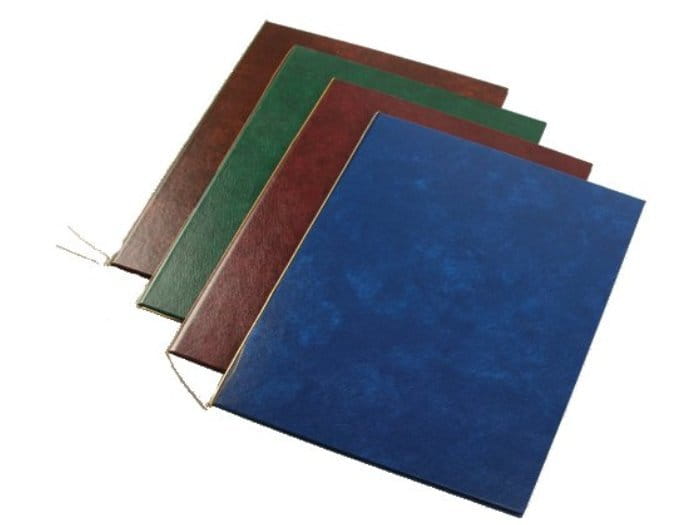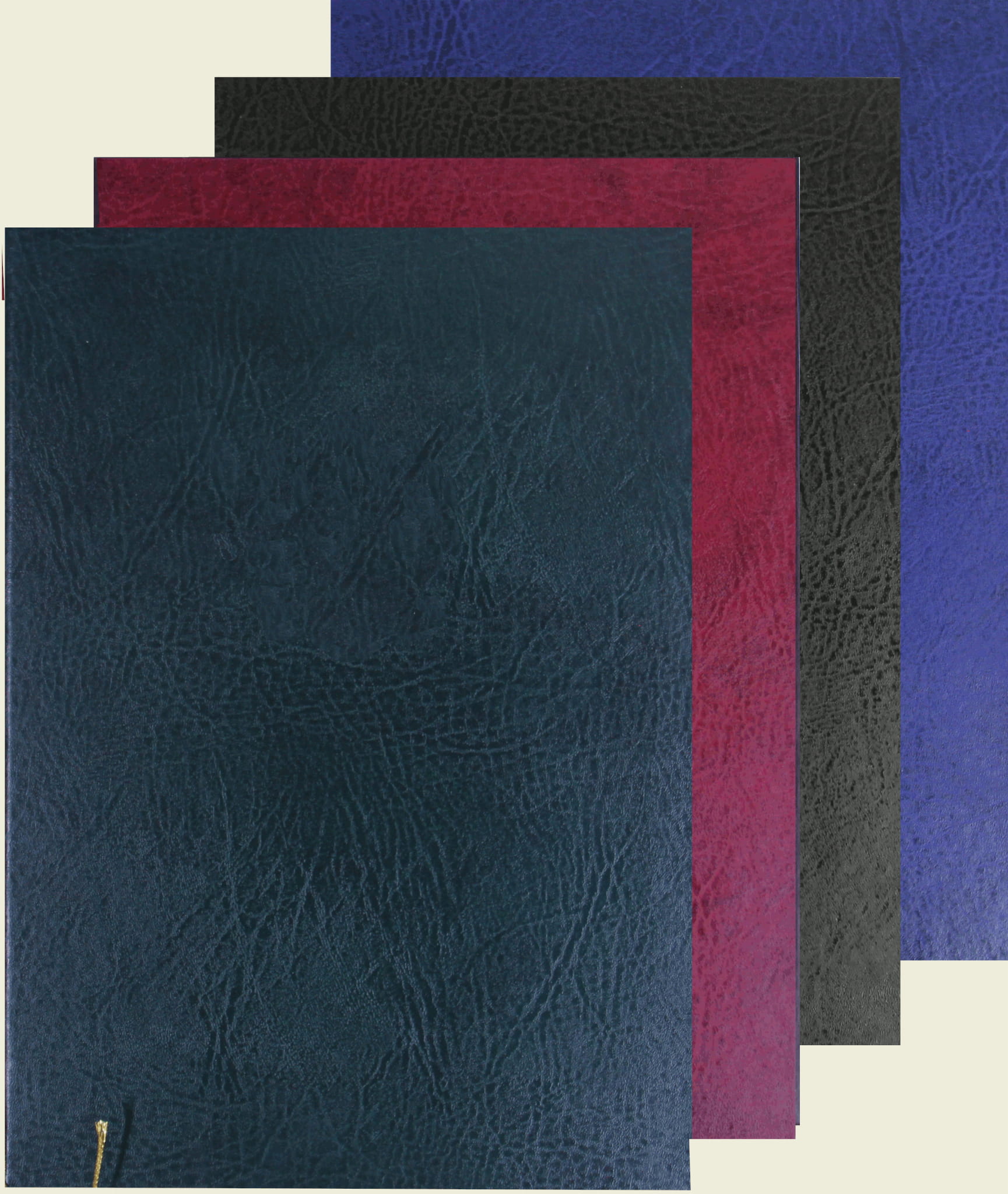 Elegancka oprawa introligatorska bez nadruku, wewnątrz dodatkowa listwa uniemożliwiająca wysunięcie się dokumentu, wzdłuż długiego boku przepasana złotym sznurkiem dodającym elegancji.