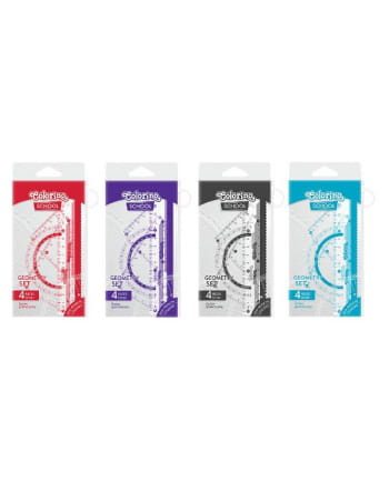 Zestaw geometryczny z przezroczystego, trwałego tworzywa oraz odporną na ścieranie, nadrukowaną podziałką. Zapakowany w zamykany pokrowiec ochronny z elastycznego materiału. Dobrze sprawdzi się w szkole i w domu.