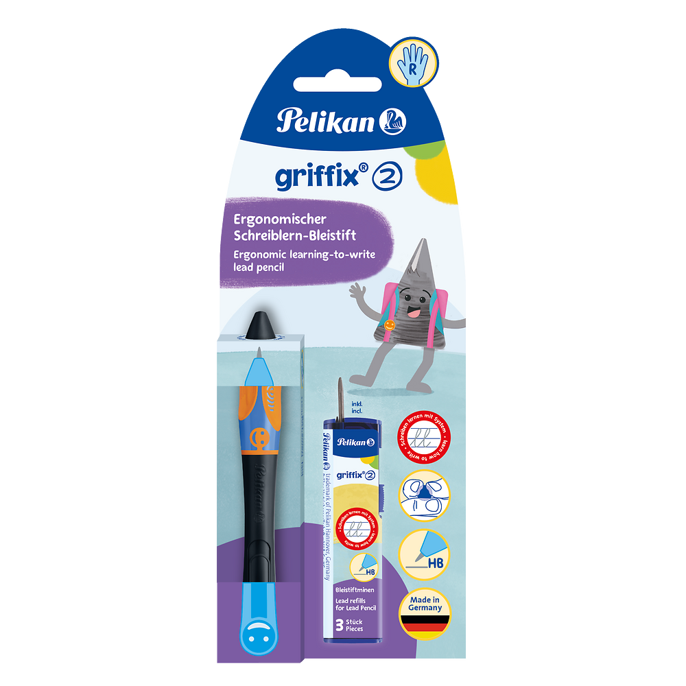 Po zakończeniu ćwiczeń z kredką świecową griffix®i ustaleniu ręki dominującej, pora na ćwiczenia z wykorzystaniem ołówka griffix®.