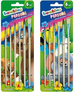 Praktyczny i uniwersalny zestaw 6 pędzelków szkolnych w rozmiarach: 2, 4, 6, 8, 10 i 12. Pędzelki idealnie rozprowadzają zarówno farby akwarelowe jak i plakatowe, ale można je też stosować do aplikacji kleju.
