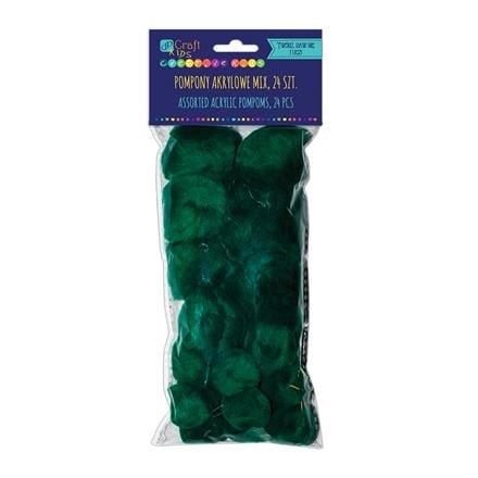 Pompony akrylowe mix ciemnozielone a'24szt.