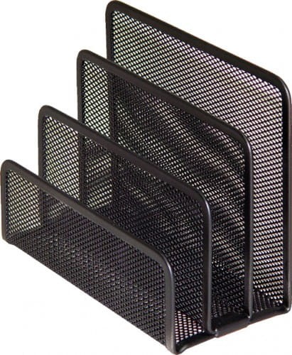 Wykonany z metalu powlekanego czarnym lakierem stojak do kopert