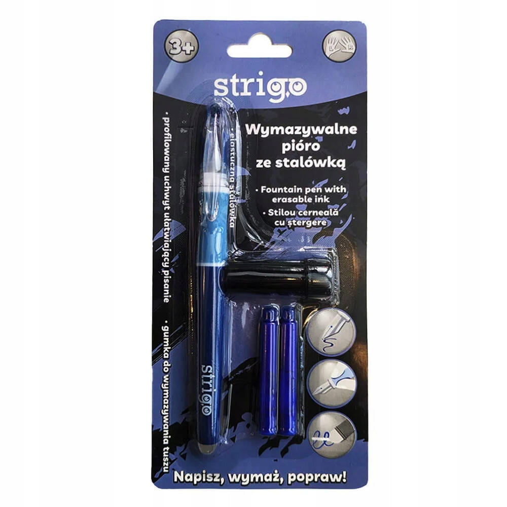 Pióro Strigo wymazywalne, ścieralne dla dzieci do nauki piania: 2 naboje + czyścik do stalówki