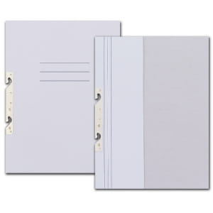 Metalowy zaczep umozliwia wpinanie skoroszytu do segregatora bez konieczności otwierania jego mechanizmu.