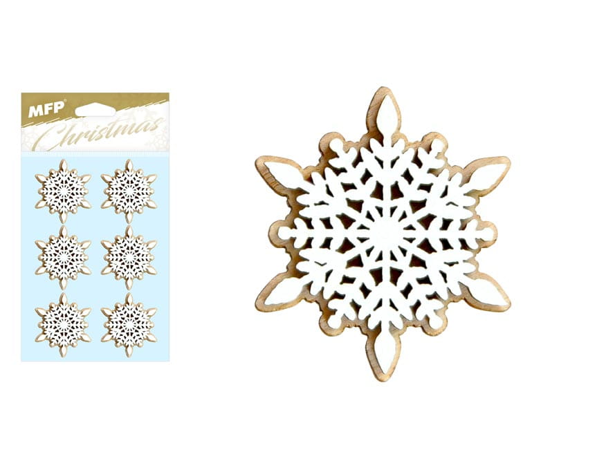 Śnieżynka drewniana z naklejką 6 szt.