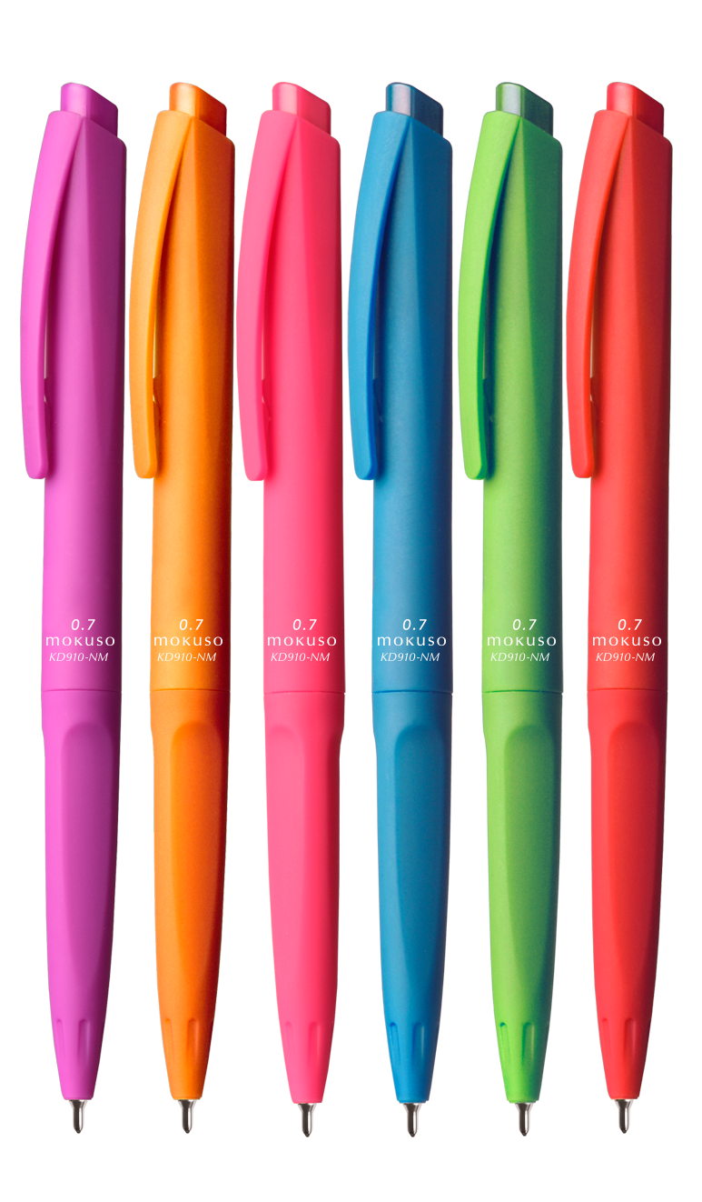 Długopis automatyczny MOKUSO wyposażony w końcówkę igłową i miękko piszący wkład olejowy. Grubość linii pisania: 0,7 mm. Mix kolorów obudowy. Wkład niebieski.