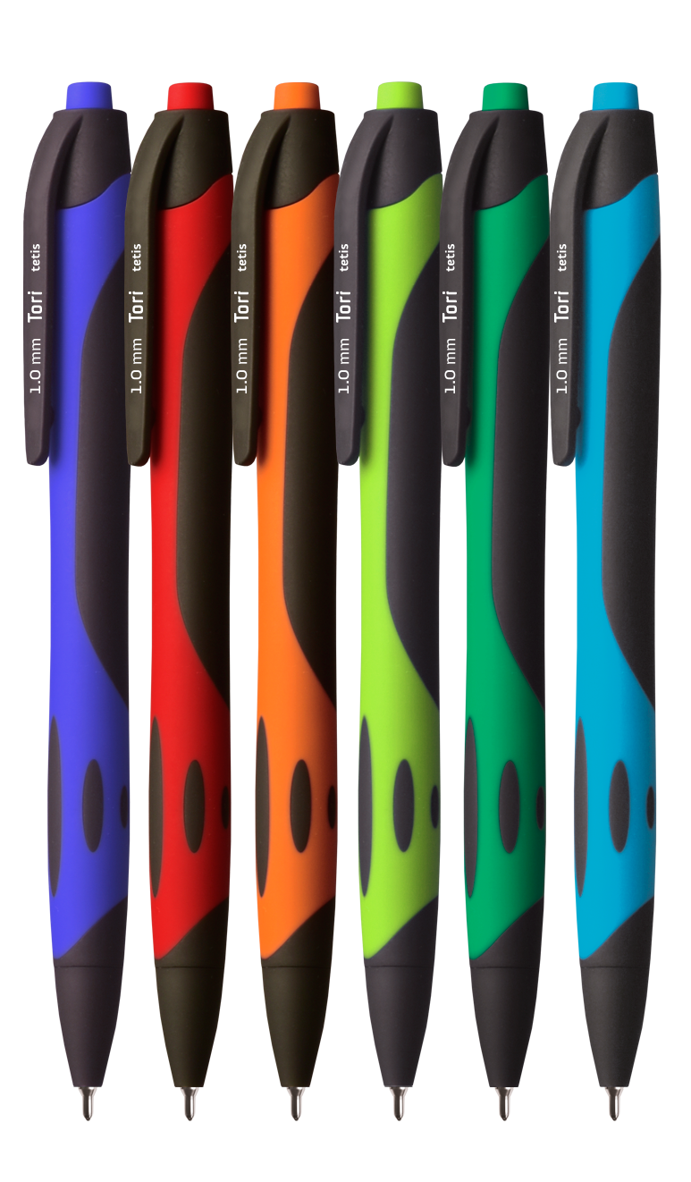 Długopis automatyczny TORI wyposażony w końcówkę igłową i miękko piszący wkład olejowy. Grubość linii pisania: 1,0 mm. Mix kolorów obudowy. Wkład niebieski.