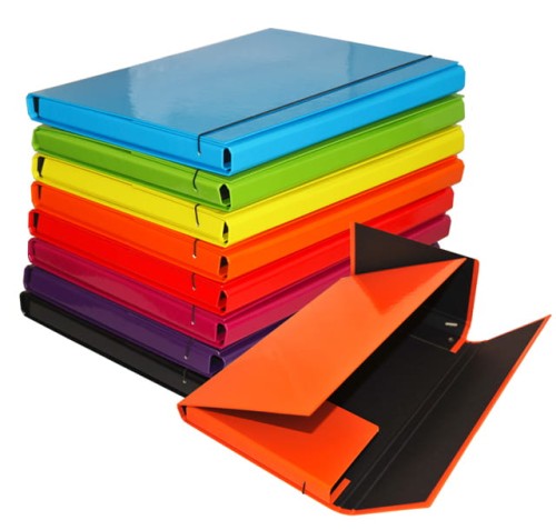 Teczka skrzydłowa z gumką , wykonana z grubej tektury.
