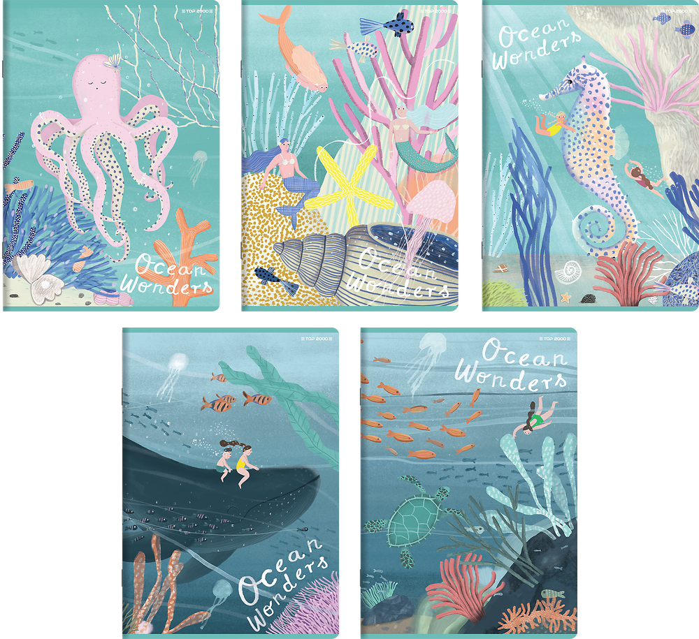 Odkryj magiczne zeszyty Top 2000 Ocean Wonders w wyjątkowych wzorach inspirowanych podwodnym światem! Każdy zeszyt to podróż do głębin oceanu, gdzie niezwykłe stworzenia morskie i kolorowe rafy koralowe stają się Twoimi towarzyszami podczas notowania na szkolnych lekcjach. Wyjątkowe okładki pobudzą Twoją wyobraźnię, a jakość i gładkość papieru zapewni Ci doskonały komfort pisania na każdej stronie. Matowe wykończenie okładek nadaje im elegancji, a nałożenie wybiórczego lakieru dodaje niezwykłego uroku. Wybieraj spośród pięciu różnych okładek wprost z podwodnych głębin!